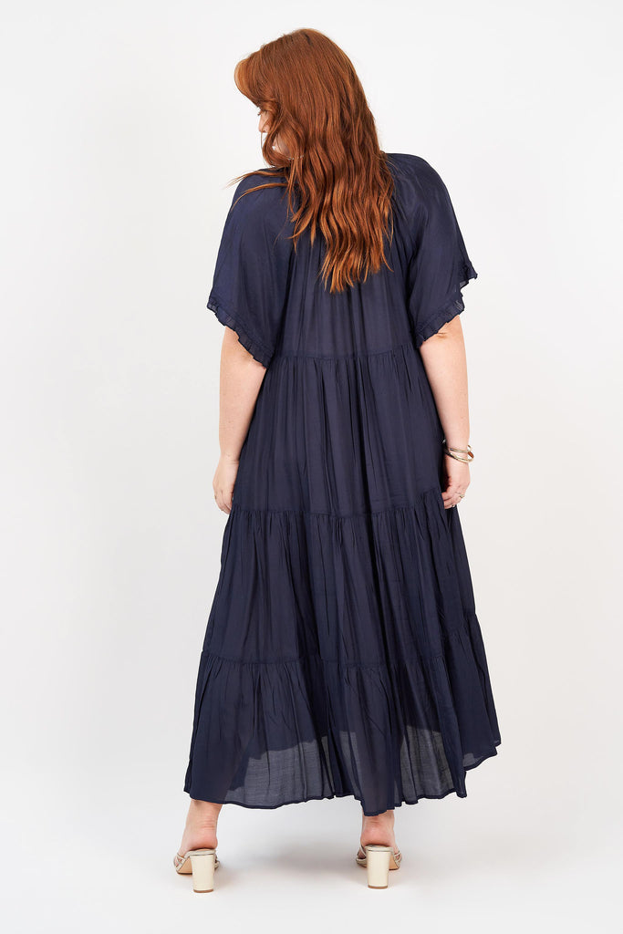 Our favourite top has been made into a dress! This short sleeved Amisha maxi has a sweeping silhouette to give you that boho chic look and is so comfortable to wear it is destined to become a favourite dress in your wardrobe. Please note we recommend wearing with a half slip.