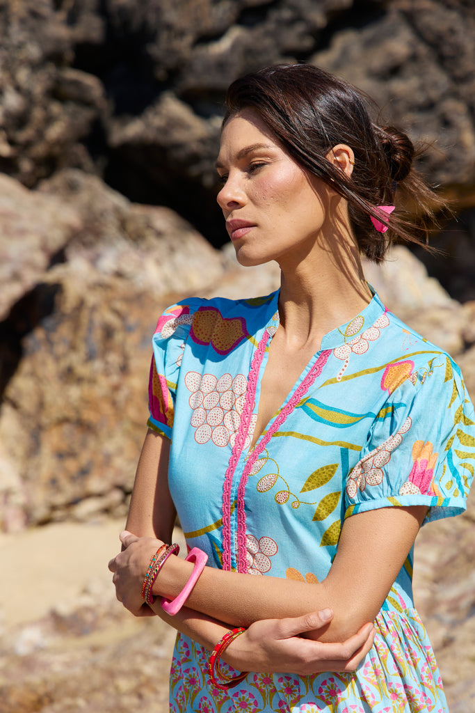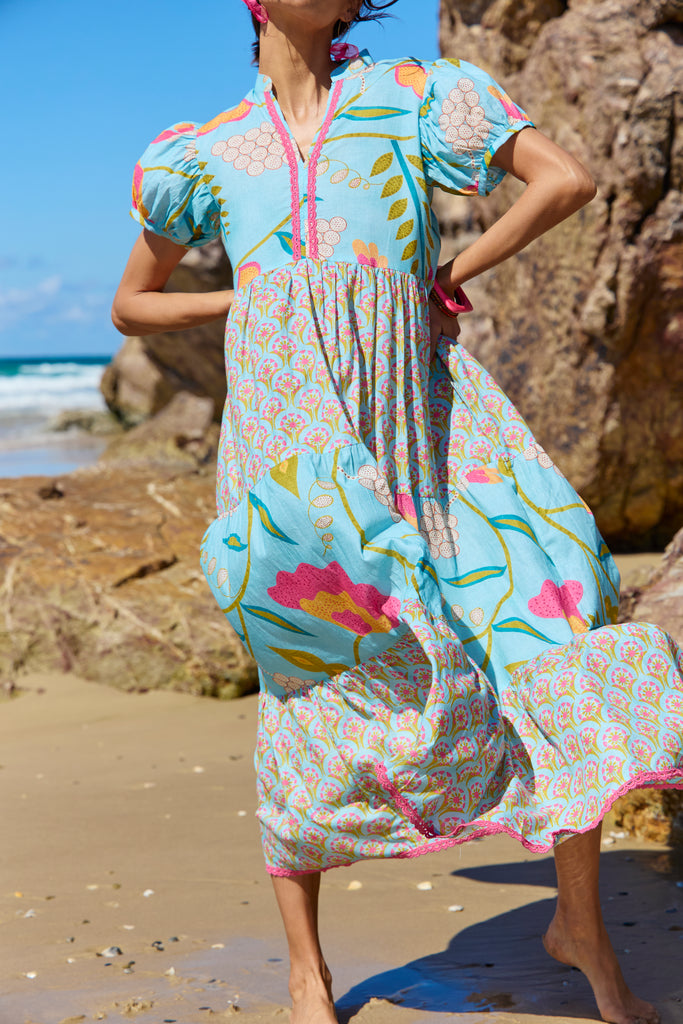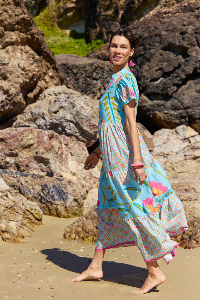Elevate your wardrobe with the effortless bohemian charm of the Naudic Frida Maxi Dress. Crafted from 100% breathable cotton, this stunning piece features the exclusive Avalon Patch print – a vibrant mosaic of patchwork-inspired motifs in earthy tones of terracotta, sage green, and soft neutrals, evoking a sense of wanderlust and timeless style. Perfect for sunny Australian days or balmy evenings at the coast, this maxi dress flows gracefully to ankle length, offering both comfort and elegance