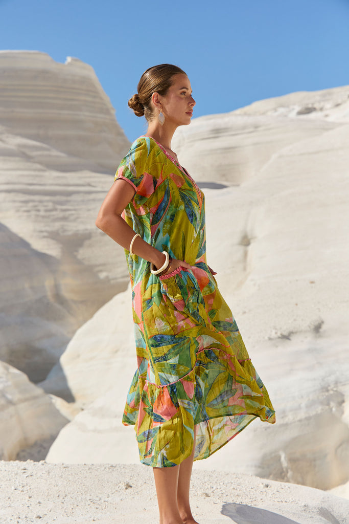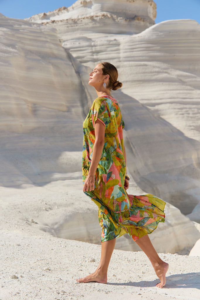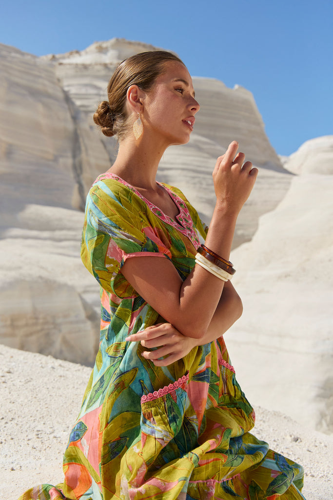 The Sao Paulo Maxi Dress in Verde print from Naudic’s Sun Weaver spring collection combines relaxed boho styling with everyday practicality. Its breezy 100% cotton fabric, tiered silhouette and discreet side pockets keep you cool and comfortable while adding functional flair. A contrast-embroidered neckline with tassel ties frames the face and nods to Naudic’s global-handcrafted heritage, and the Verdant palette—soft jade, olive and hints of sand—mirrors Stradbroke Island’s coastline, the muse for this collection. Slip it on with raffia slides for a beach brunch or layer with a tan belt and espadrilles for dinner; either way, the dress moves effortlessly from laid-back afternoons to sunset drinks.