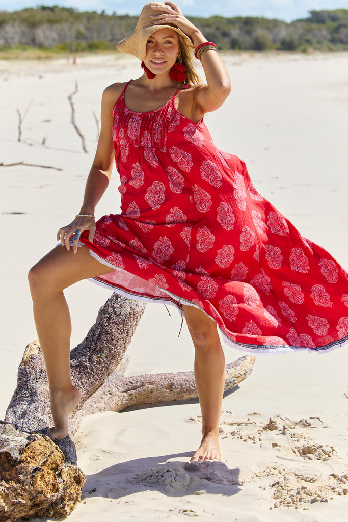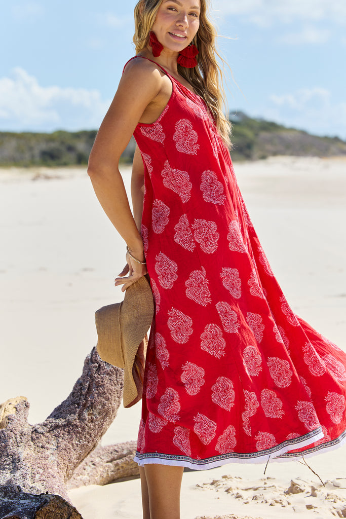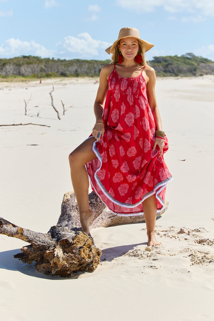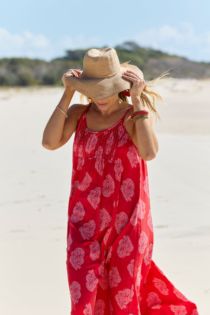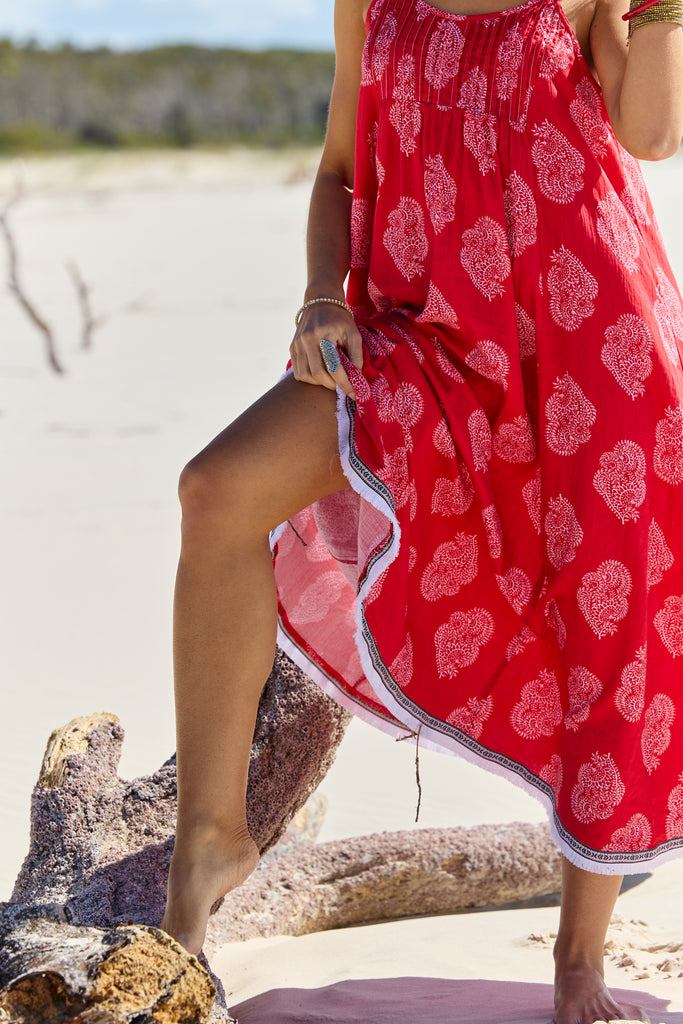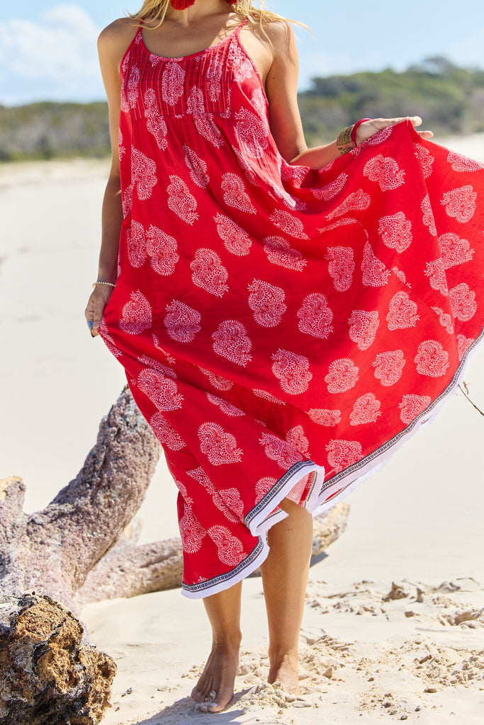 Styling tips: Pair the Astrid Maxi Paisley with strappy sandals and a wide-brimmed hat for a chic beachside look, or elevate it with espadrille wedges and statement earrings for a sunset dinner by the sea.