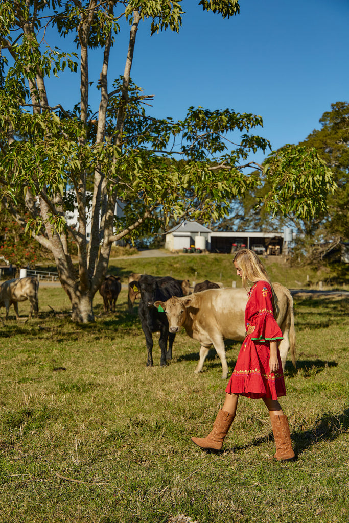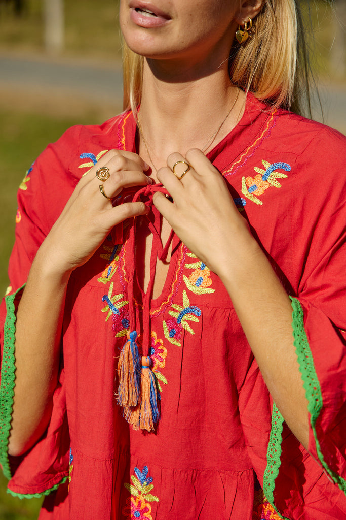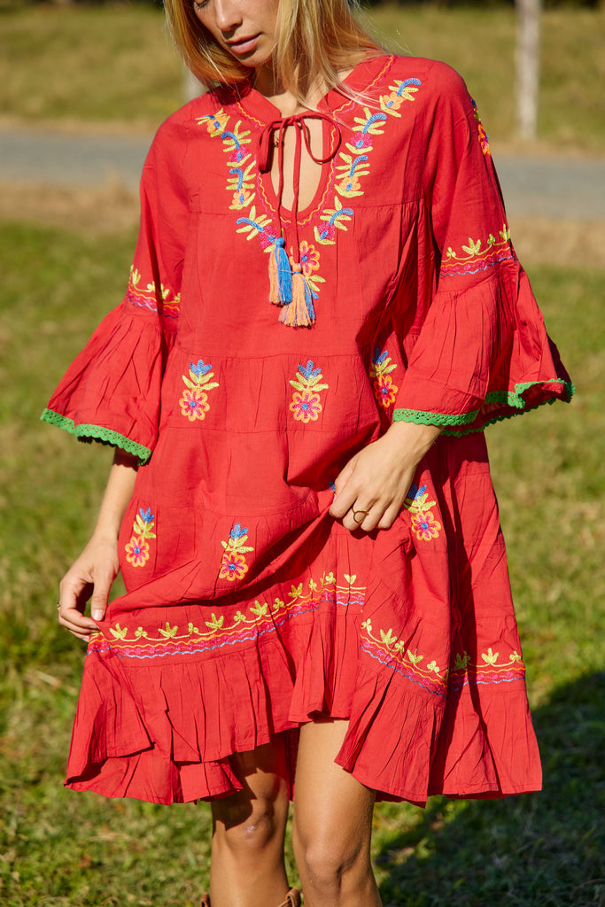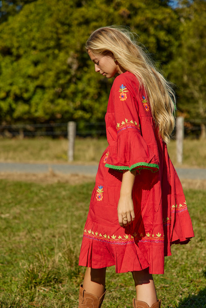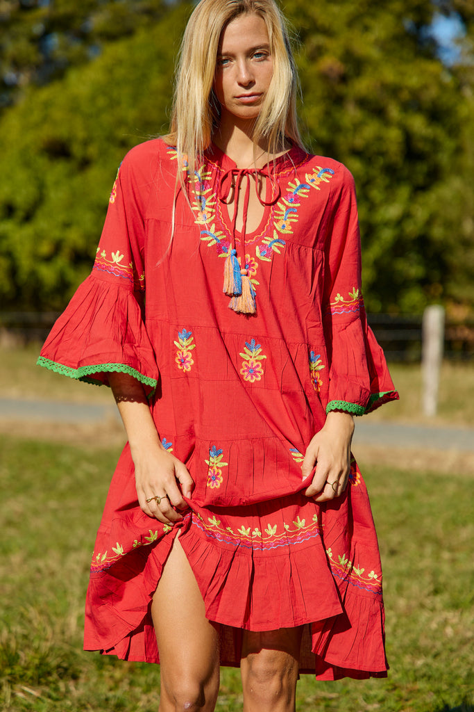 Lulu Dress Colaba Embroidery Red