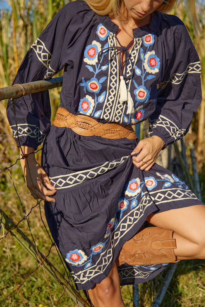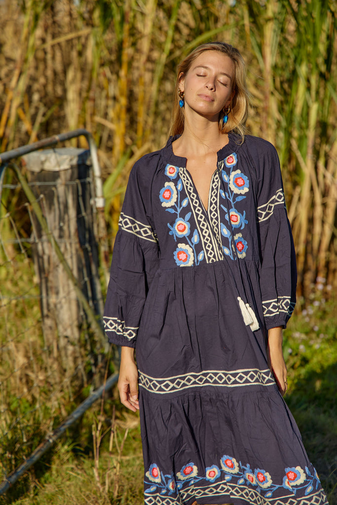 The Molly Dress Parel Embroidery from the Naudic Spellbound collection is a stunning blend of comfort and style. Adorned with delicate parel embroidery, this dress brings a touch of whimsical elegance to your wardrobe. Its flowing silhouette and soft fabric make it perfect for warm days or layered looks. Effortlessly chic, the Molly Dress is ideal for both everyday adventures and special occasions.