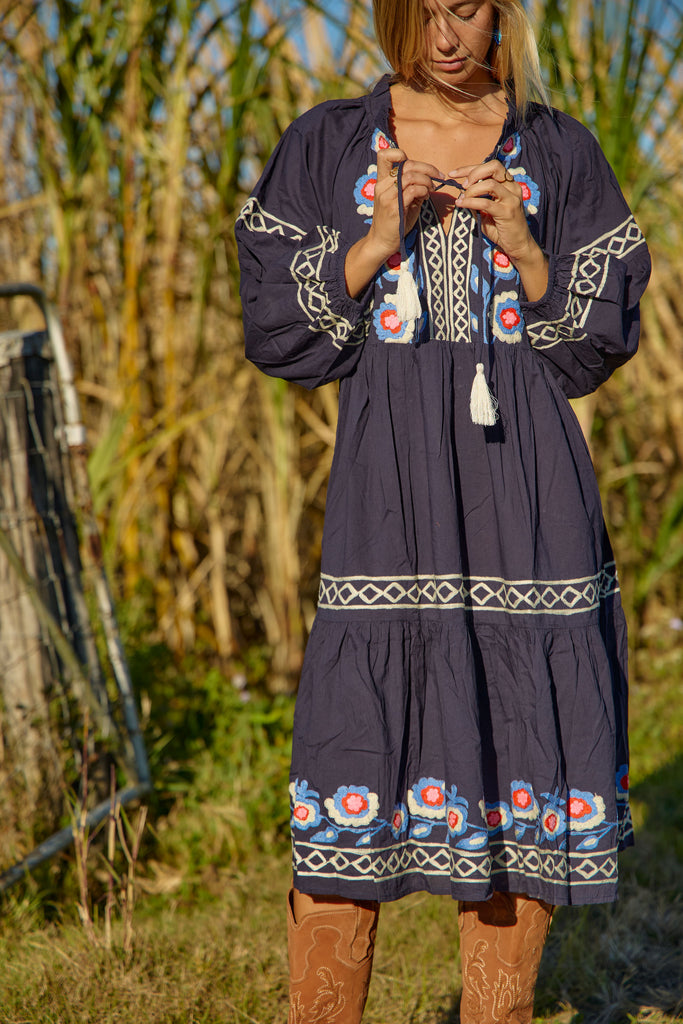 For the price, I was expecting more. I was disappointed that the neck tie is fixed, rather than a drawstring - a quick/cheap alternative over thoughtfulness. The cotton is light (again cheap option) but will be cool through the hot months. The embroidery is beautiful however one flower, after one wear, has a loose thread so wasn't finished well and I have no idea how to stop it unravelling. I washed it on gentle cycle in a special large bag however the tassles already look a bit ratty. For the price I thought this would be a special dress, but it already looks like an everyday dress . Its nice/fine/ok but I am disappointed overall and would have given 3.5 stars if I could.