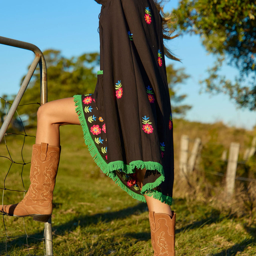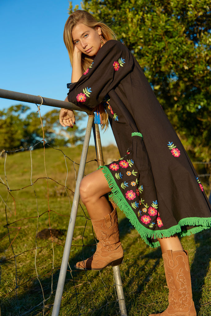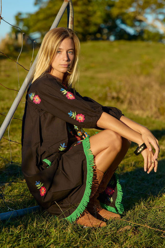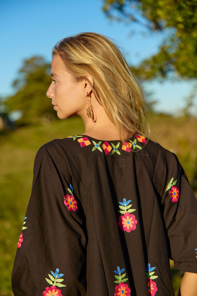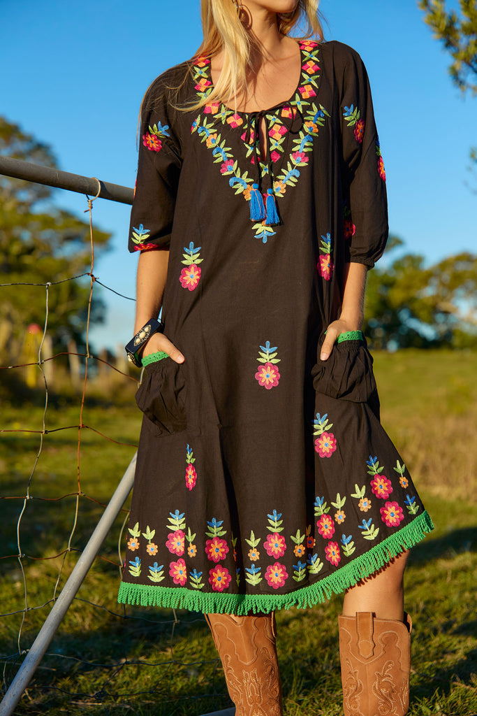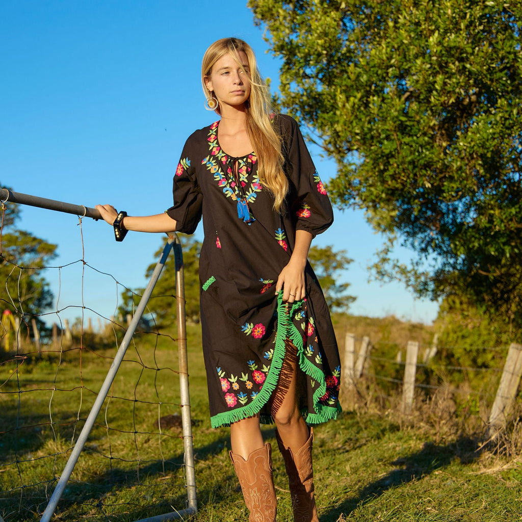 The Sao Paulo Dress in Colaba Black Embroidery from Naudic’s Spellbound Collection is a sophisticated and versatile piece, designed for effortless elegance. Made from 100% cotton, this dress features unique embroidery around the neckline, highlighting the brand’s attention to artisanal detail and bohemian inspiration. Its relaxed silhouette and comfortable fit make it perfect for both casual days and special occasions. Pair it with a belt and sneakers for a laid-back look, or dress it up with statement accessories to embrace the enchanting spirit of the collection.