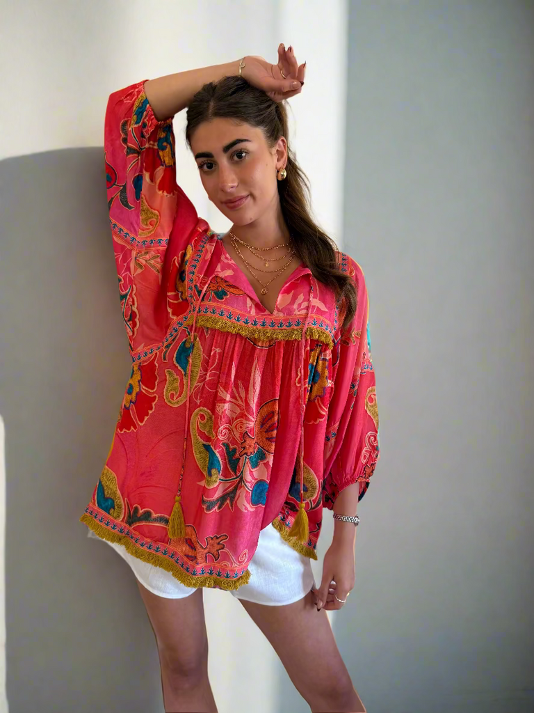 Every new season brings fresh inspiration and our latest arrivals are no exception. Designed with wanderlust in mind, each piece reflects the beauty of faraway destinations, from intricate patterns reminiscent of bustling marketplaces to breezy fabrics that echo the warmth of sun-drenched coastlines. All these beautiful prints featured in our boho dresses, flowy tops and lightweight pants.