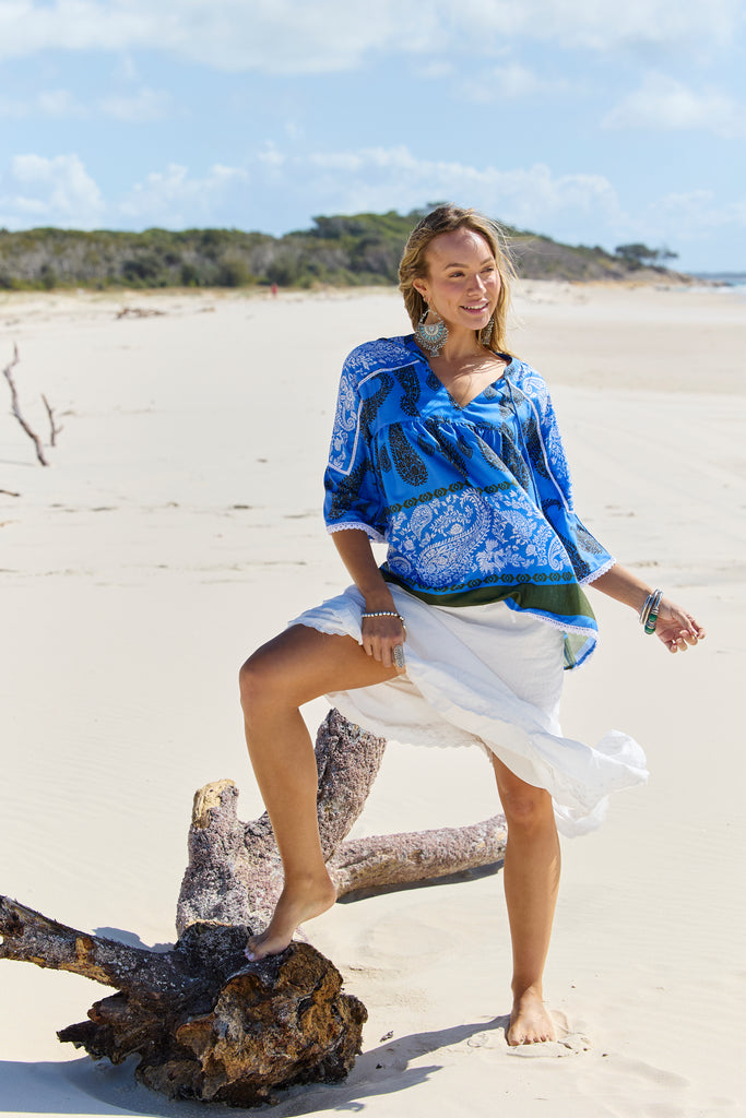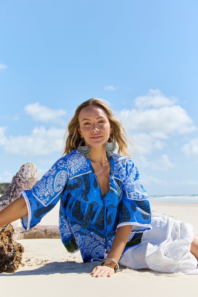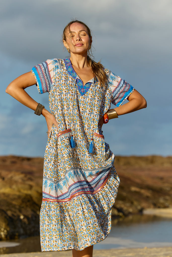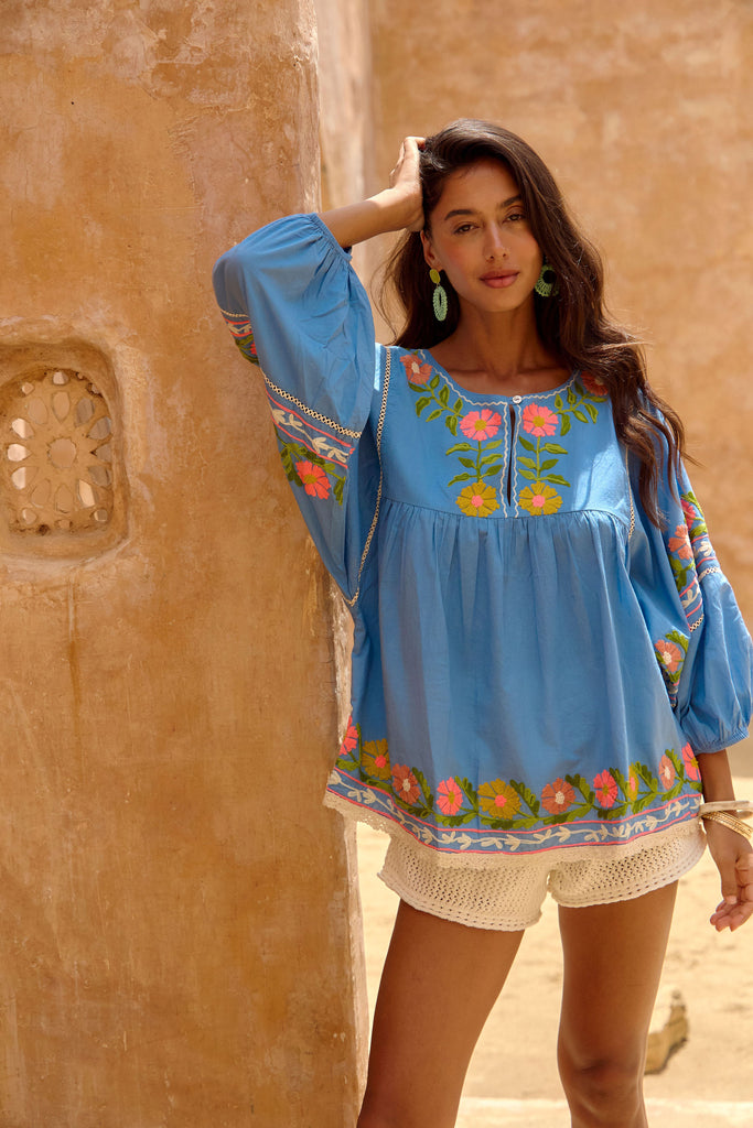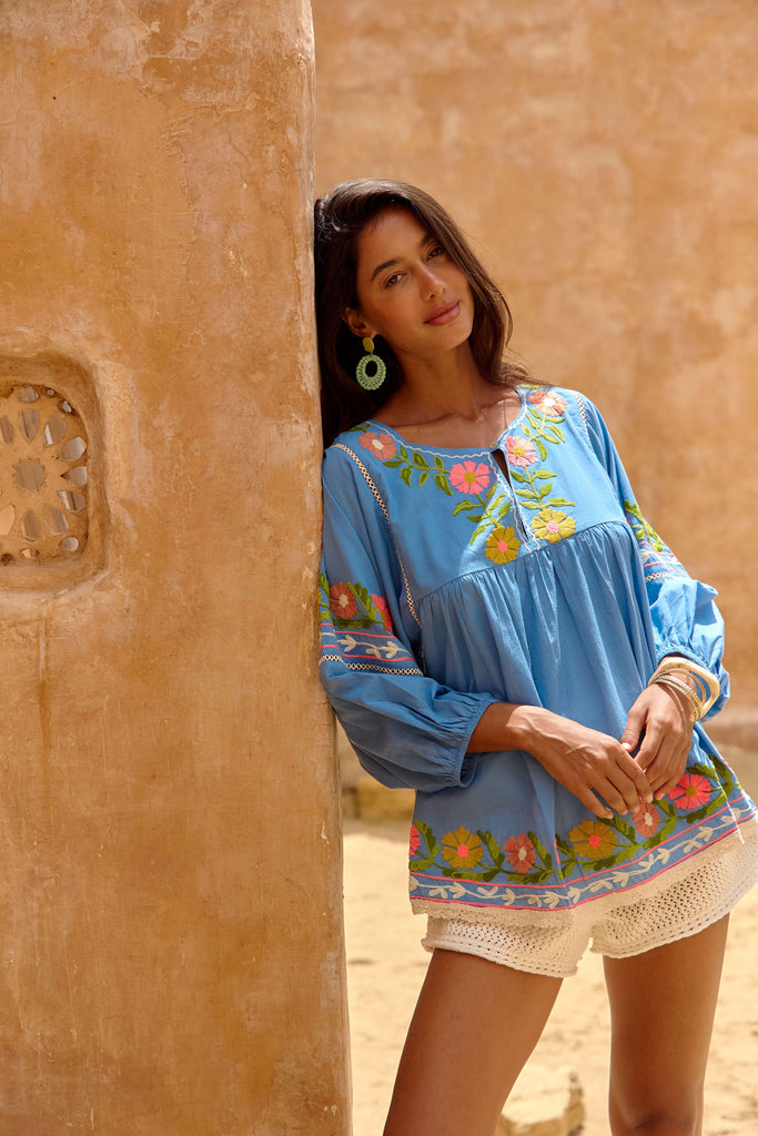 Sao Paulo Dress Suzani Aari Embroidery Blue