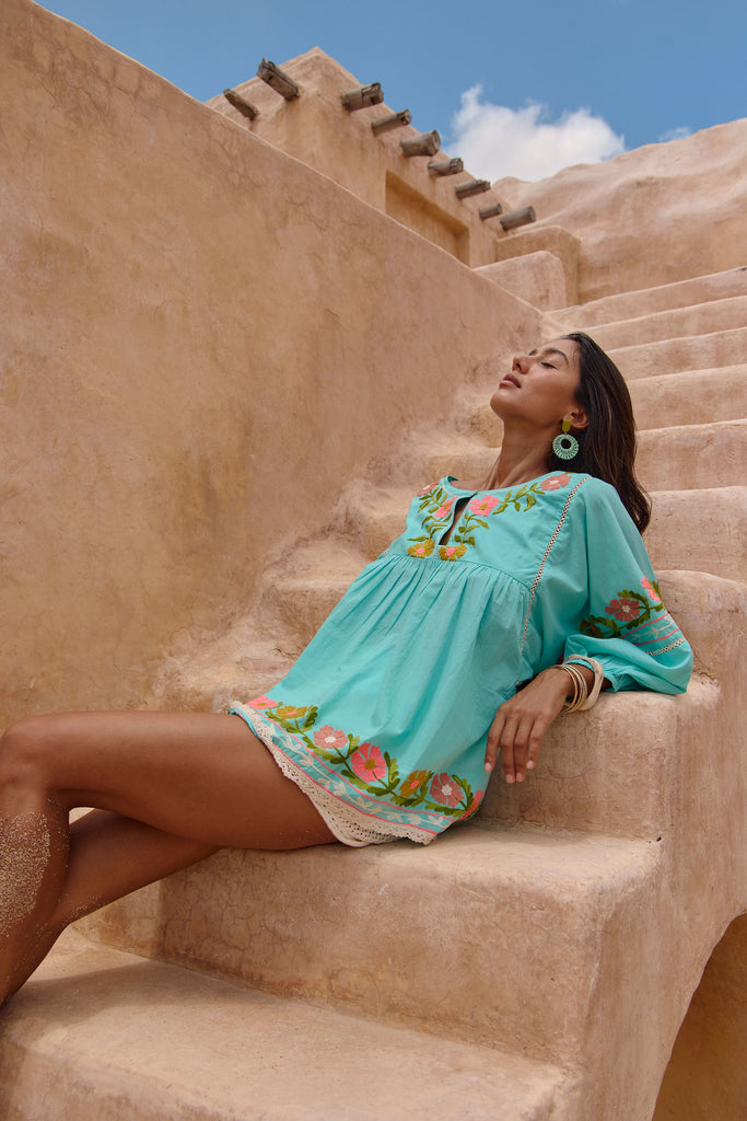 Sao Paulo Dress Suzani Aari Embroidery Aqua