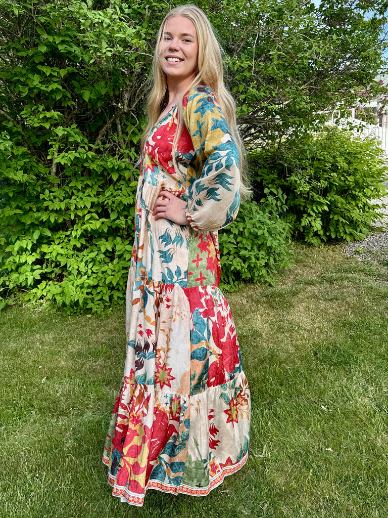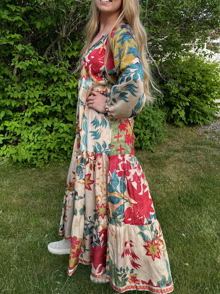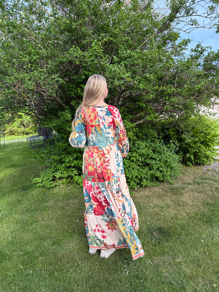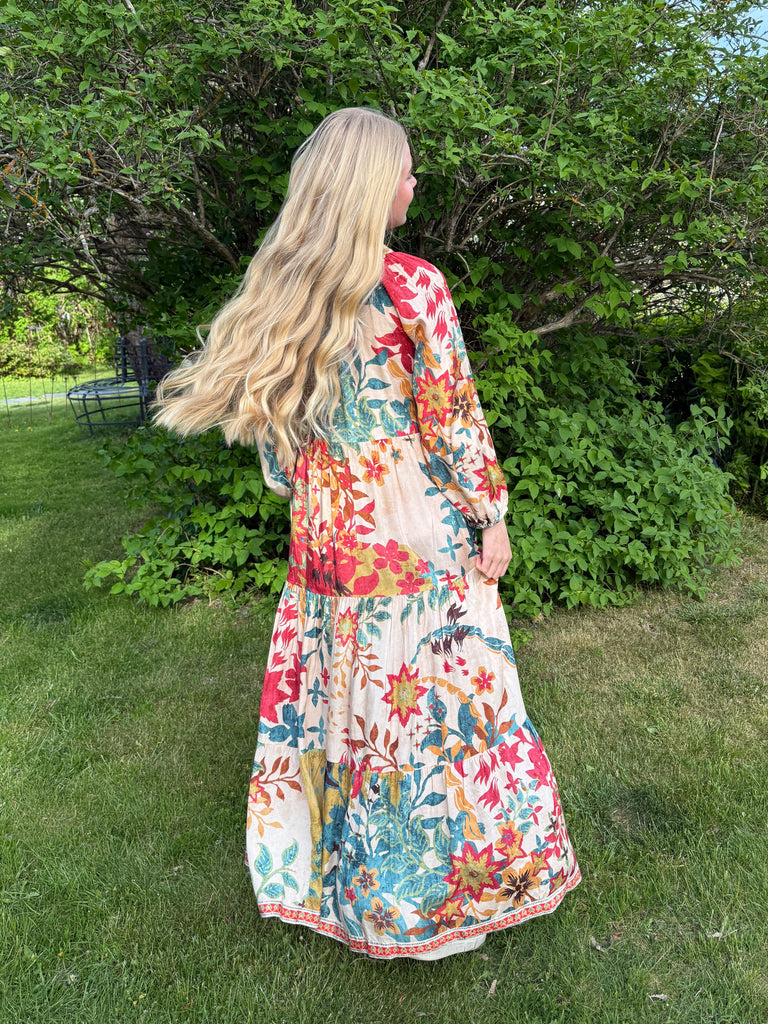 Make a statement in the Naudic Amisha Maxi Long Sleeve Tapestry dress. Featuring gently gathered long sleeves, cascading tiers, and a flattering neckline, this sweeping silhouette delivers effortless boho chic style. Crafted from 100% viscose for a soft, luxurious feel, the Amisha Maxi is perfect for any occasion-simply pair with your favourite flats for a casual look or dress it up with wedges and bold accessories.