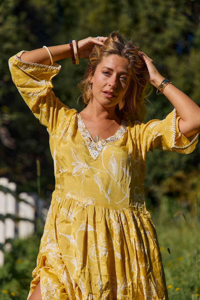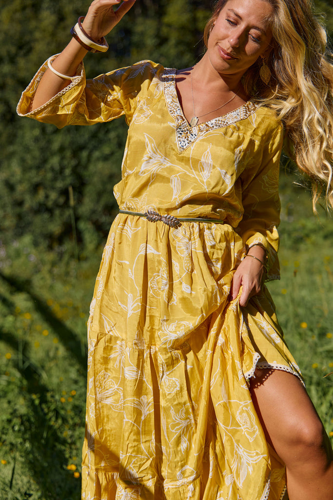 The Naudic Avalon Amber dress in viscose features a luxurious, flowing fabric that drapes beautifully and feels exceptionally soft against the skin. This standout piece is enhanced by intricate neckline embroidery, combining breathable comfort and elegant detail for effortless, stylish wear.