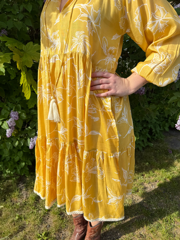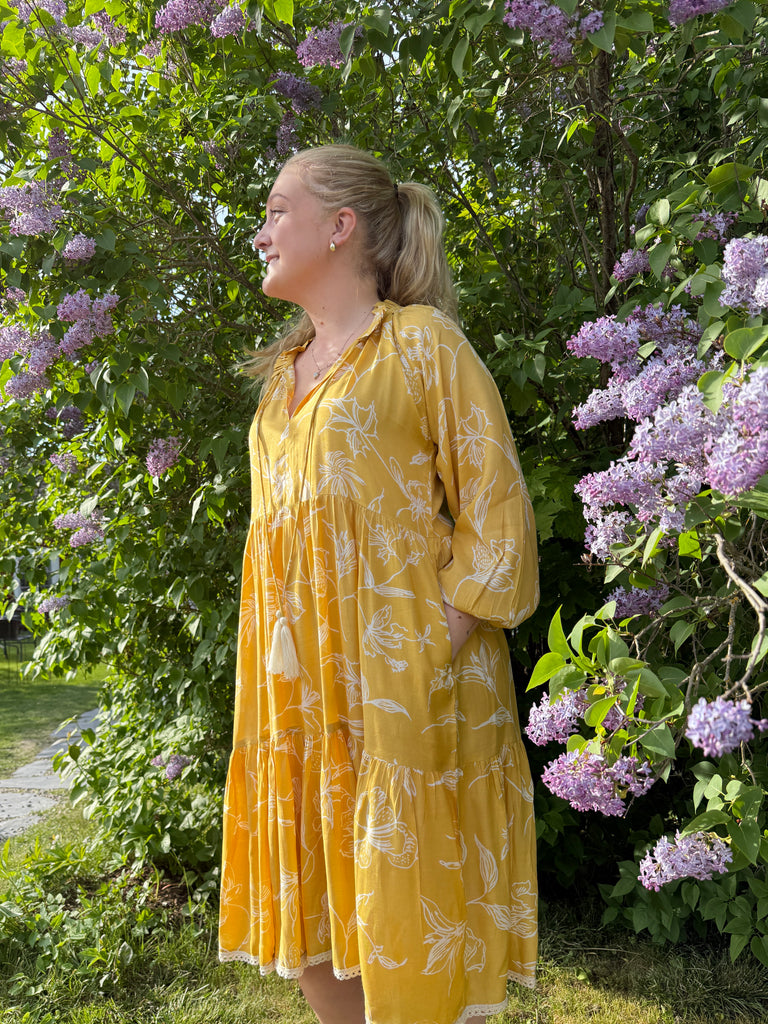 The new Naudic Molly Dress Amber in viscose is a standout wardrobe piece thanks to its luxurious, flowing fabric that drapes beautifully and feels incredibly soft against the skin. Made from 100% viscose, this dress offers breathable comfort and moisture absorption, making it perfect for warmer days or layering in cooler weather. Its relaxed, true-to-size fit with thoughtful details like pockets combines effortless style with practical wearability.