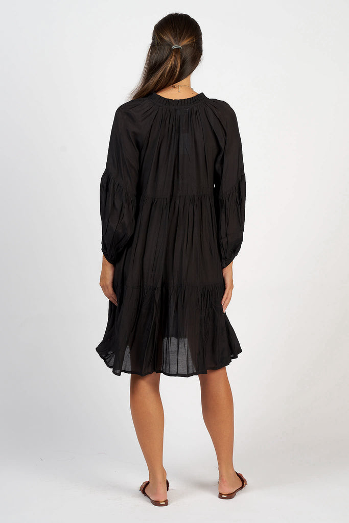 Our Molly Dress is a style that can be worn all year round. Cuffed parachute sleeves allow for versatility during seasons while the frilled, V neckline adds a feminine touch. Please note we recommend wearing with a half slip.