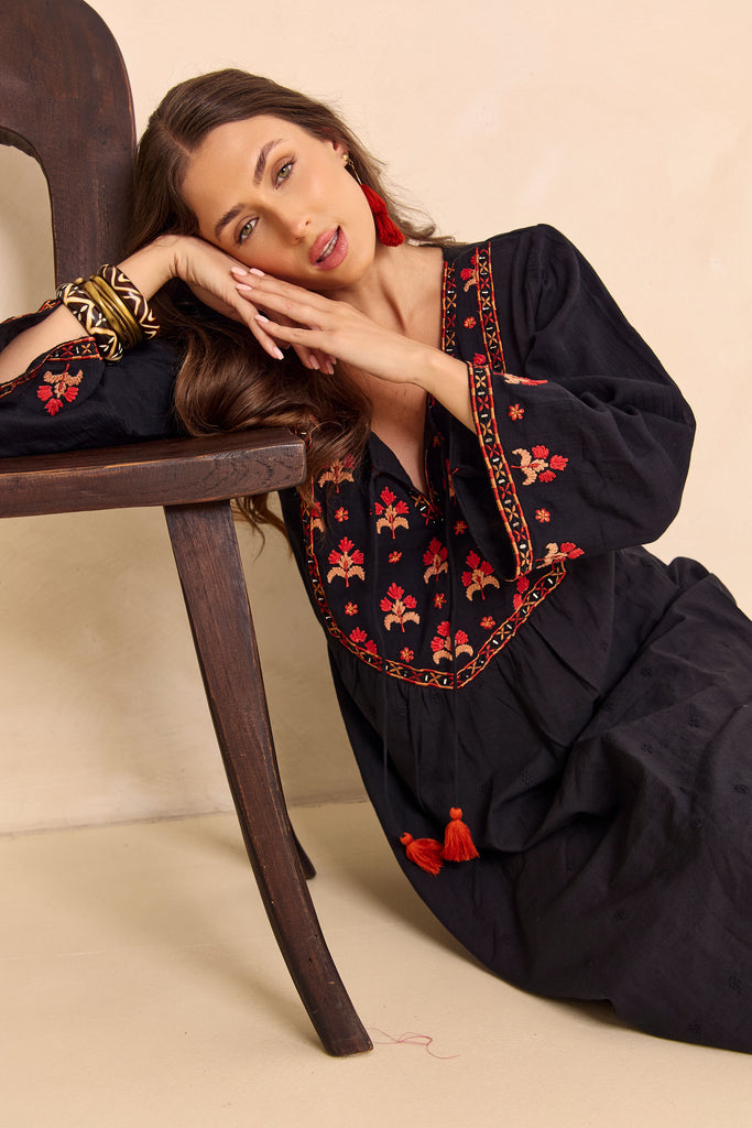 This collection features soft prints, flowing silhouettes, and handcrafted details made for sunlit strolls, market days, and dancing under open skies.